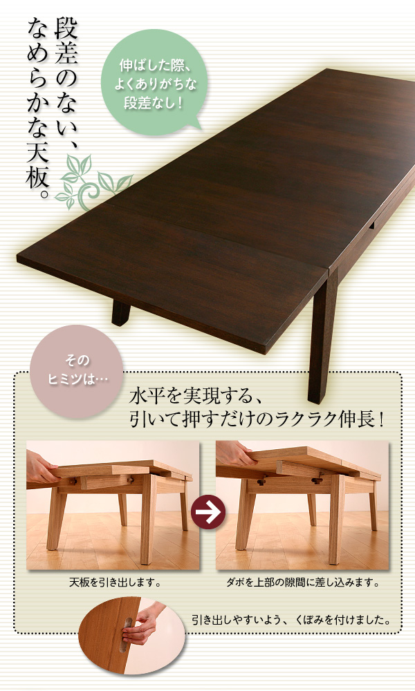 ◆段差のない、なめらかな天板。伸ばした際、よくありがちな段差なし!
