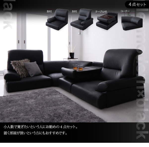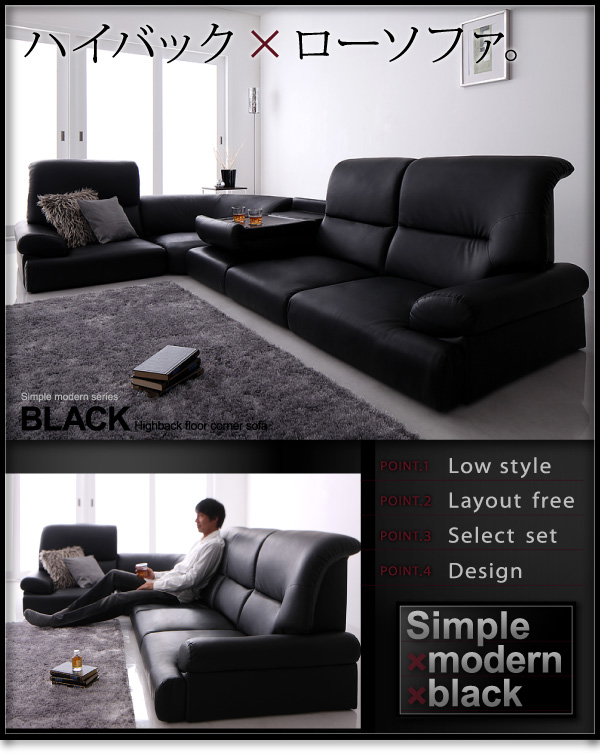 こちらの商品は「シンプルモダンシリーズ【BLACK】ブラック ハイバックフロアコーナーソファ 5点 ブラック」の商品ページです。