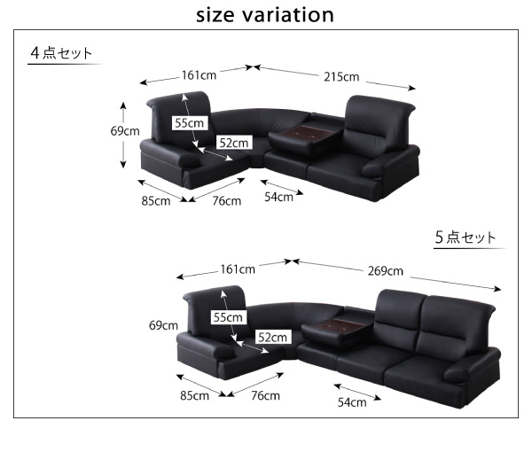 - ソファーセット 5点セット【BLACK】ブラック シンプルモダンシリーズ【BLACK】ブラック ハイバックフロアコーナーソファ