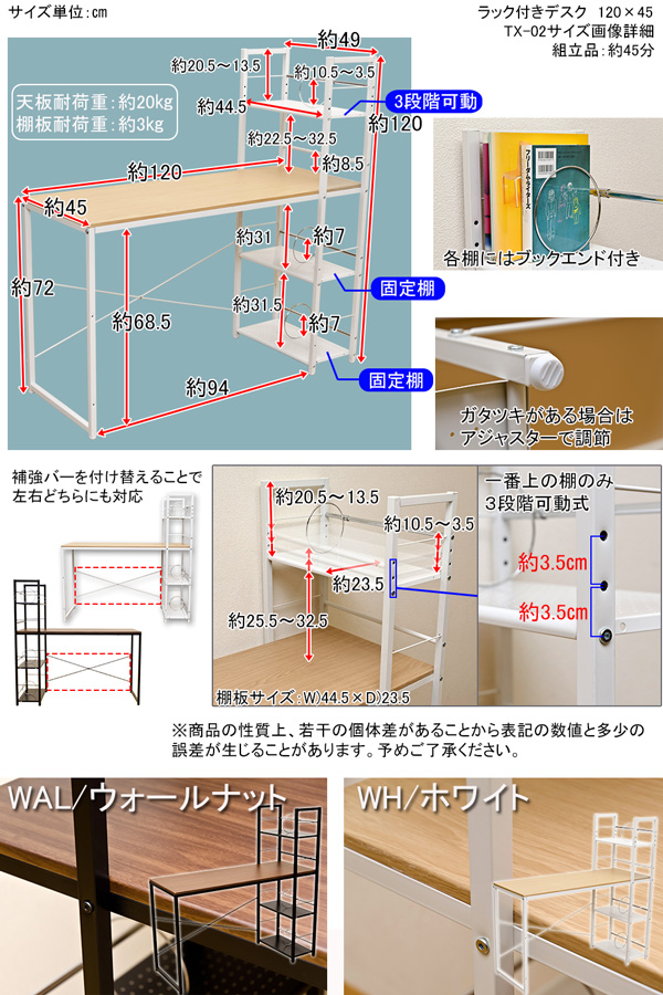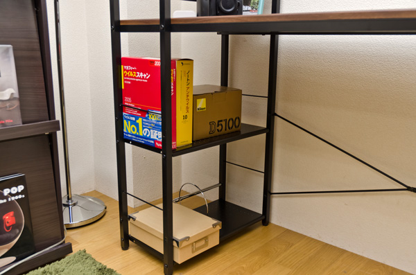 机と棚がひとつになった ラック付きデスク 120×45cm です