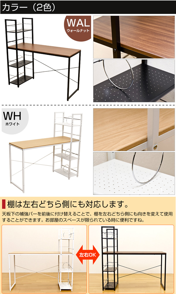 補強バーの付け替えで棚は左右どちら側にも対応可能です