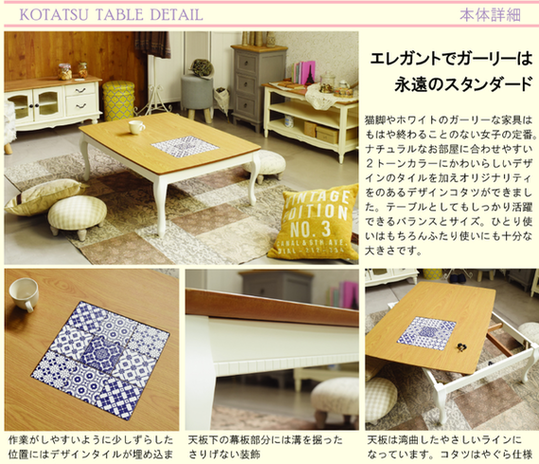 - リビングこたつテーブル(アリス) 長方形(105cm×75cm) 本体 木製 KT-101WH ホワイト(白)