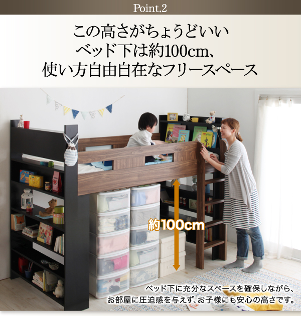 ベッド下に充分なスペースを確保しながら、お部屋に圧迫感を与えず、お子様にも安心の高さです。
