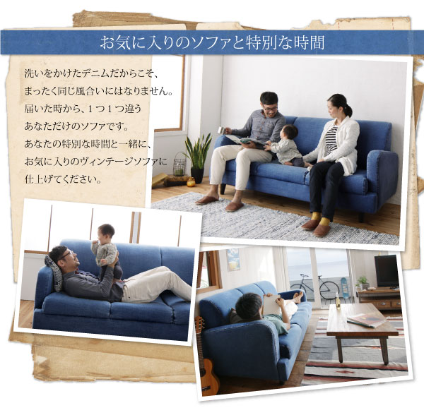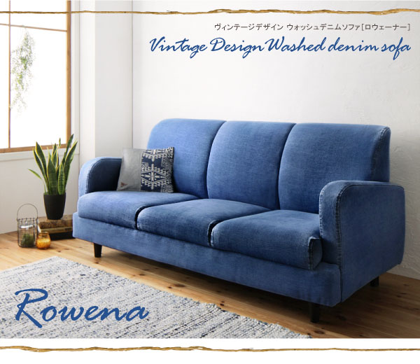 - ソファー 3人掛け【Rowena】デニム ヴィンテージデザイン デニムソファ【Rowena】ロウェーナー