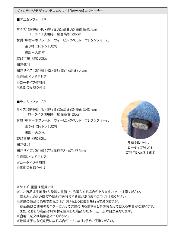 こちらは「ソファー 3人掛け【Rowena】デニム ヴィンテージデザイン デニムソファ【Rowena】ロウェーナー」の商品ページです。商品画像や説明文には色違いやサイズ違いの商品情報が載っている場合がございます。