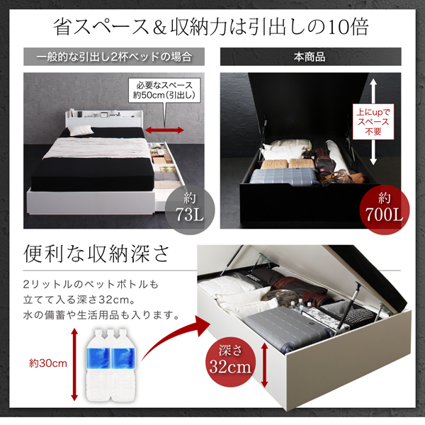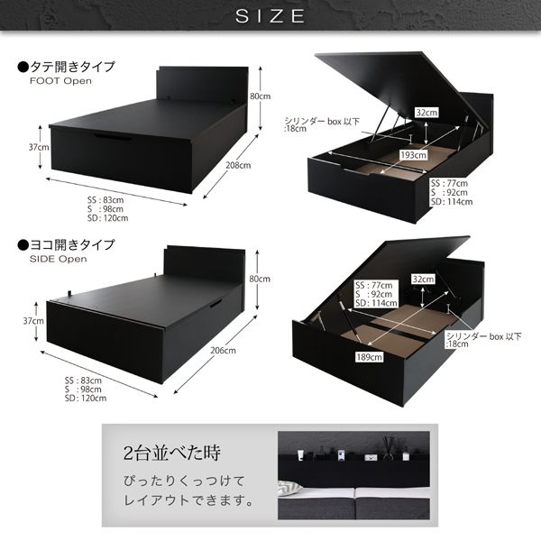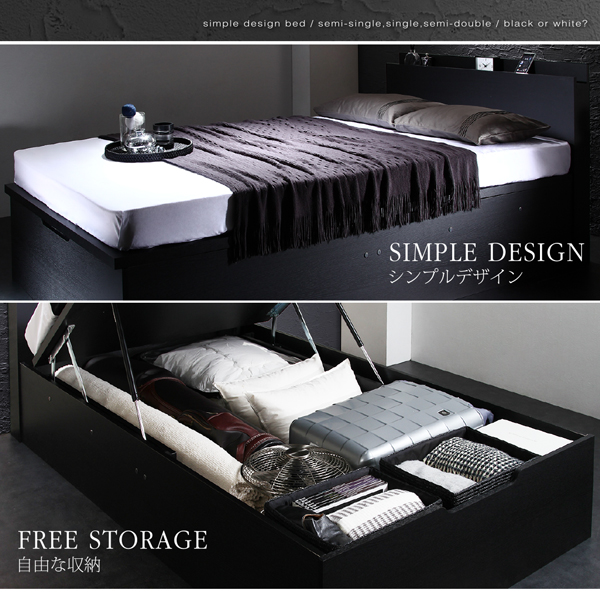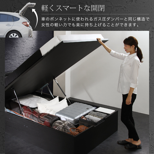 - 【組立設置費込】 収納ベッド セミダブル 横開き 深さラージ 【薄型プレミアムポケットコイルマットレス付】 フレームカラー:ブラック シンプルデザイン大容量収納跳ね上げ式ベッド Fermer フェルマー