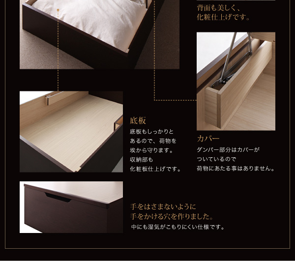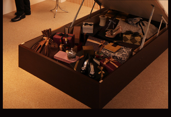 見た目は普通のベッドですが、床下は一面、収納庫。