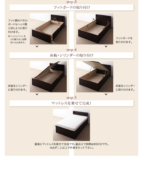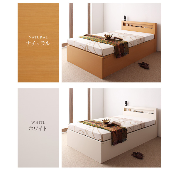 - 【組立設置費込】収納ベッド【横開き】 シングル 深さラージ【薄型スタンダードボンネルコイルマットレス付】フレームカラー:ホワイト開閉タイプが選べる跳ね上げ収納ベッド Grand L グランド・エル