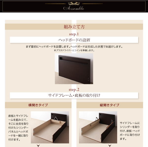 ※お客様自身で組み立てる場合は、プラスドライバー、コインをご用意いただき、必ず2人以上で作業を行ってください。
