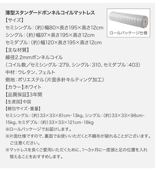 薄型スタンダードボンネルコイルマットレス