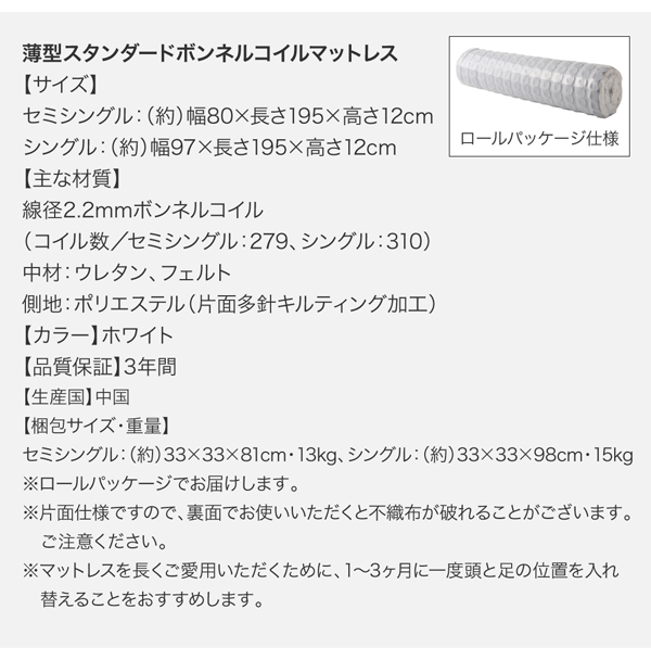 薄型スタンダードボンネルコイルマットレス