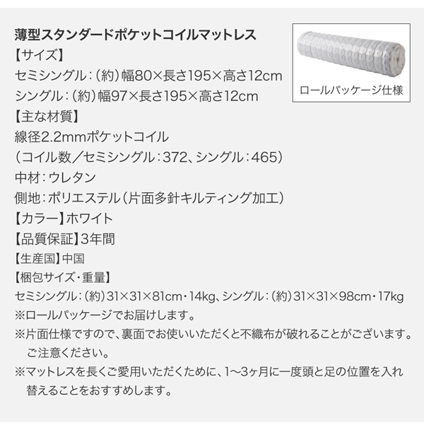 ※マットレスを長くご愛用いただくために、1〜3ヶ月に一度頭と足の位置を入れ替えたり、裏返しにすることをおすすめします。