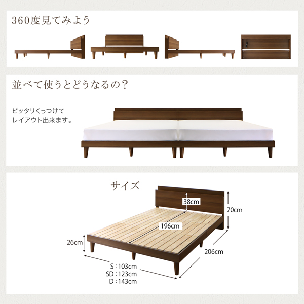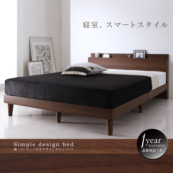 - すのこベッド セミダブル【マルチラススーパースプリングマットレス付】フレームカラー:ブラック 棚・コンセント付きデザインすのこベッド Reister レイスター