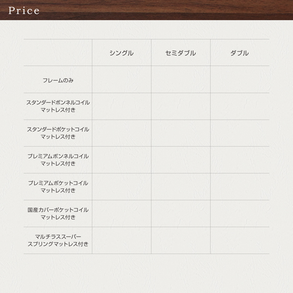 ※本製品はコイルマットレス使用時の基準で強度計算されております。床板の上に必ずコイルマットレスを敷いてご使用ください。
