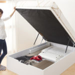 ベッドの下に衣類や道具を収納できるベッドです。引き出し式のもの、ベッド下をまるごと収納スペースとして使う跳ね上げ式があります。