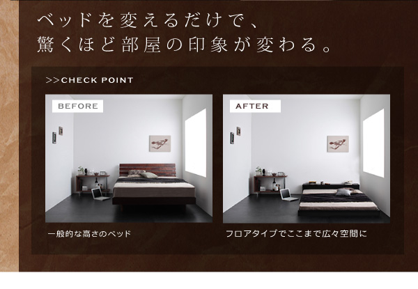ベッドを新しくしただけで、部屋全体の印象が変わるベッドだと思います。