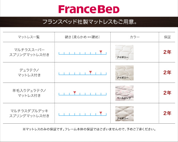 ※1年保証は一部マットレスのみとなります。フレームに保証は付きません。
