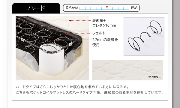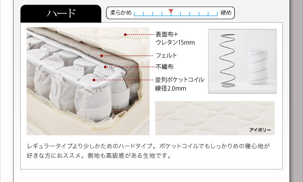 2mmポケットコイルスプリング(コイル数/S:480、SD:570、D:660)、