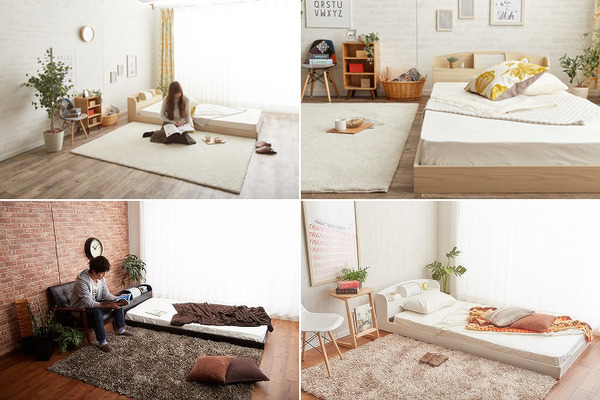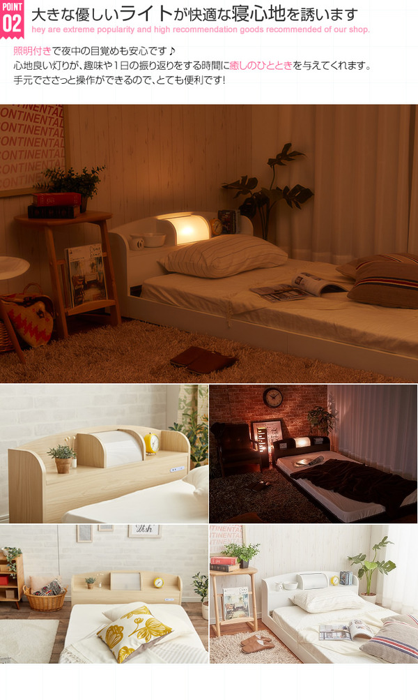 大人気のローベッド。お客様のご要望を1つにした照明棚付きのフロアベッド。【高いデザイン性、照明、棚付き】3拍子揃った大人気のローベッド!