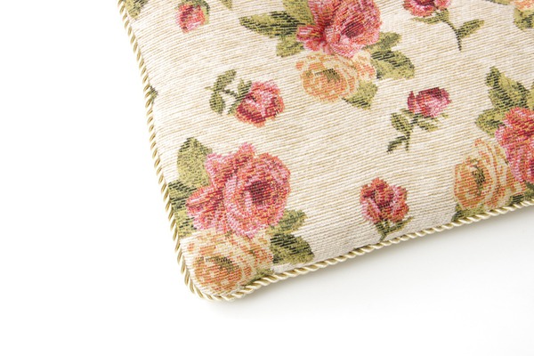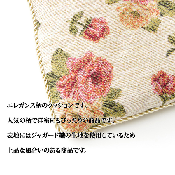 エレガンス柄のクッションです。人気の柄で洋室にもぴったりの商品です。表地にはジャガード織の生地を使用しているため上品な風合いのある商品です。