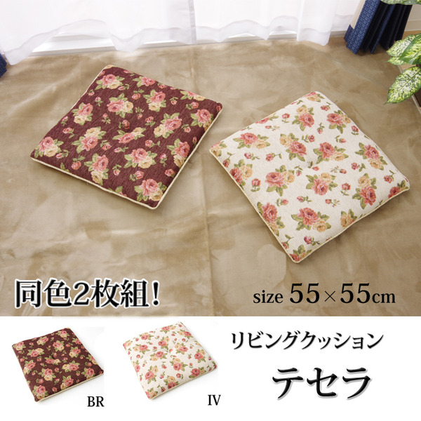 - クッション リビング エレガンス 花柄 『テセラ』 アイボリー 約55×55cm 2枚組