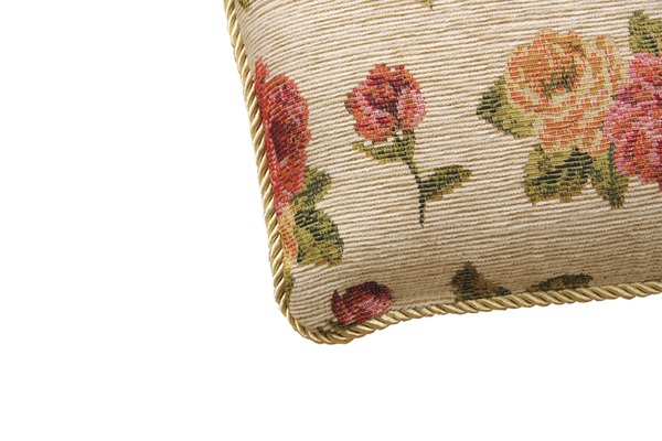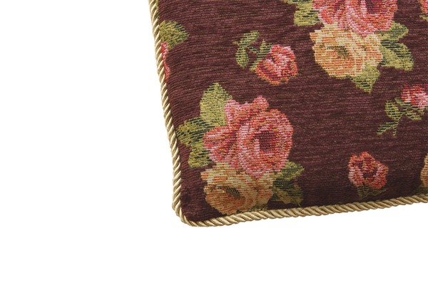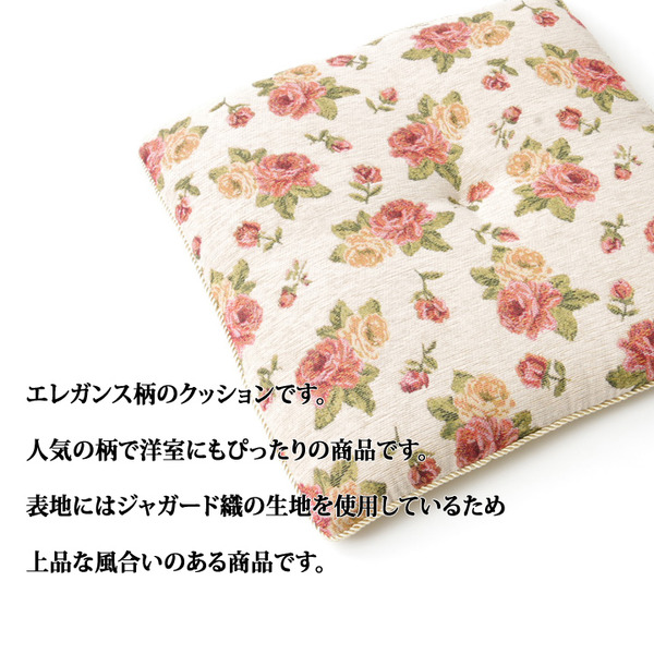 エレガンス柄のクッションです。人気の柄で洋室にもぴったりの商品です。表地にはジャガード織の生地を使用しているため上品な風合いのある商品です。