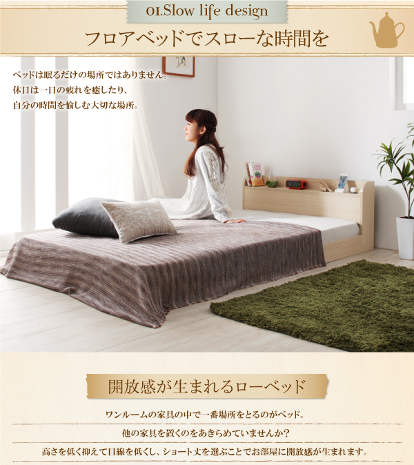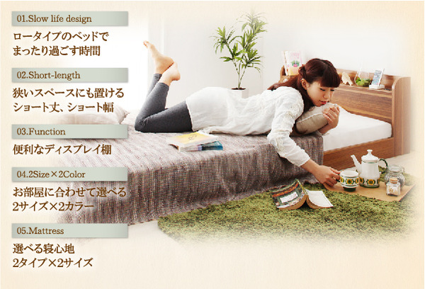 - フロアベッド セミシングル 【スタンダードボンネルコイルマットレス付】 フレームカラー:オークホワイト カバーカラー:オリーブグリーン ショート丈棚・コンセント付きフロアベッド Aliyah アリーヤ