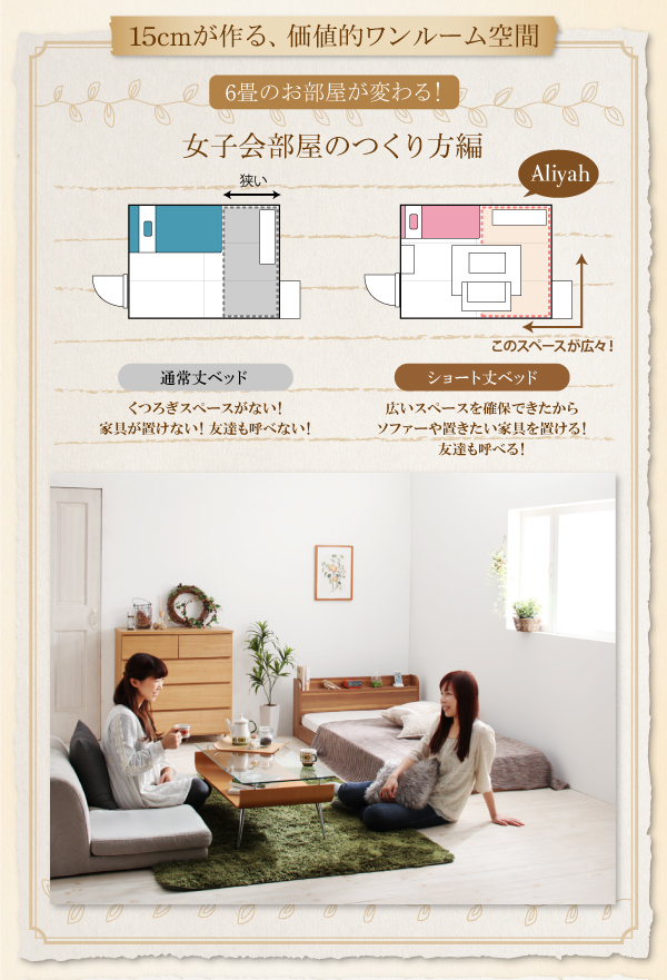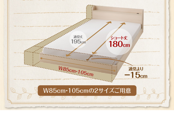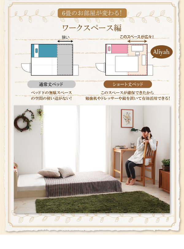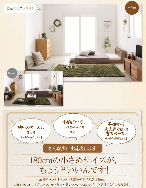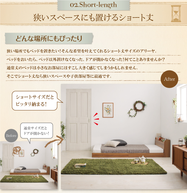 通常丈のベッドは小さなお部屋にはすこし大きく感じてしまうかもしれません。