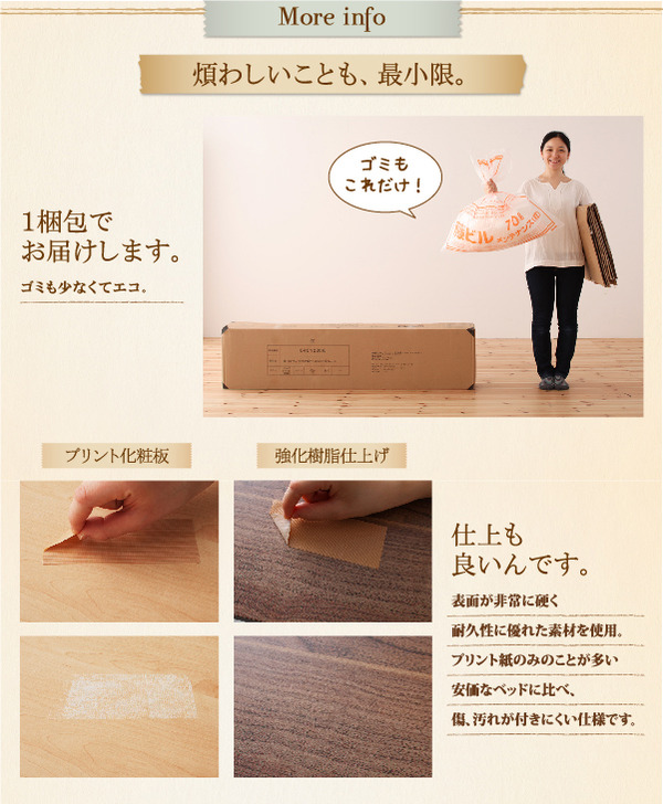 プリント紙のみのことが多い安価なベッドに比べ、傷、汚れが付きにくい