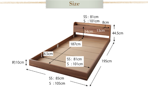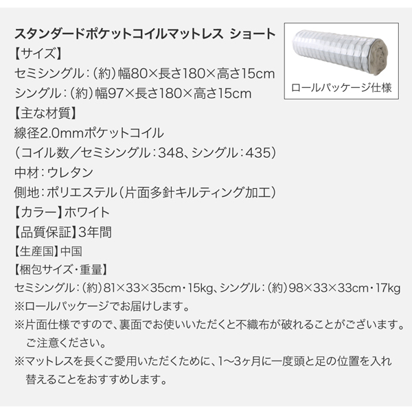 セミシングル:(約)幅80×長さ180×高さ15cm