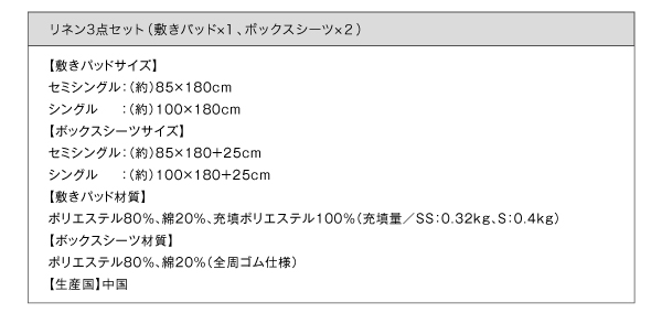 ●リネン3点セット(敷きパッドx1、ボックスシーツx2)●