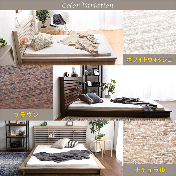 可動棚付きフロアベッド(ダブル)ベッドフレーム、ロースタイル、スリムヘッドボード|Rodelia-ロデリア-