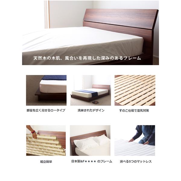 木のぬくもりを再現したシートを使用した高級感のあるベッドフレームです。低い床面がお部屋を開放的な印象にしてくれます。スノコ仕様なので通気性も抜群
