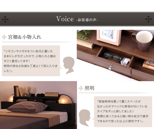 - 照明 宮付き すのこベッド 【シングル フレームのみ ウォールナット】 二口コンセント