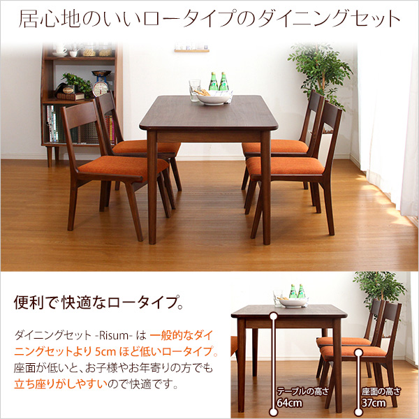 ダイニング5点セット(テーブル+チェア4脚)ナチュラルロータイプ ブラウン 木製アッシュ材|Risum-リスム-