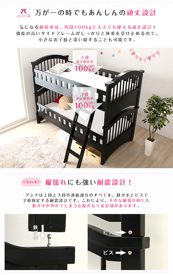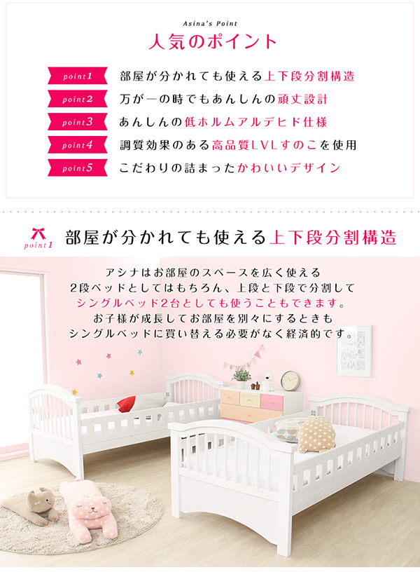 2段ベッド【Asina-アシナ-】(2段ベッド すのこ セパレート可)