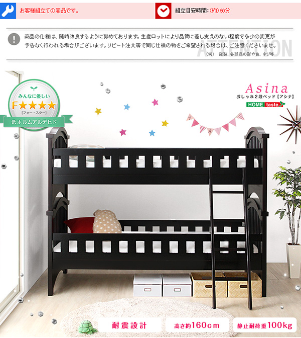 耐震機能を備えた安心設計のお子様用2段ベッド!